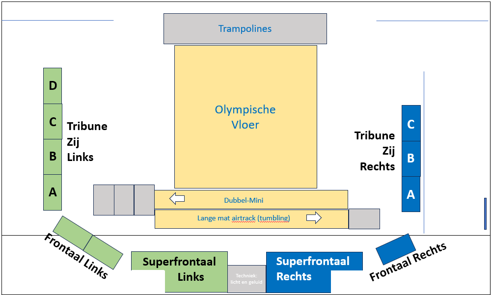 Er zijn verschillende tickets beschikbaar. We organiseren de zitplaatsen als in een arena rond de gymnastiekvloer. Wij garanderen dus een uitstekende zichtbaarheid zowel vanaf de zij- als de frontale tribunes.